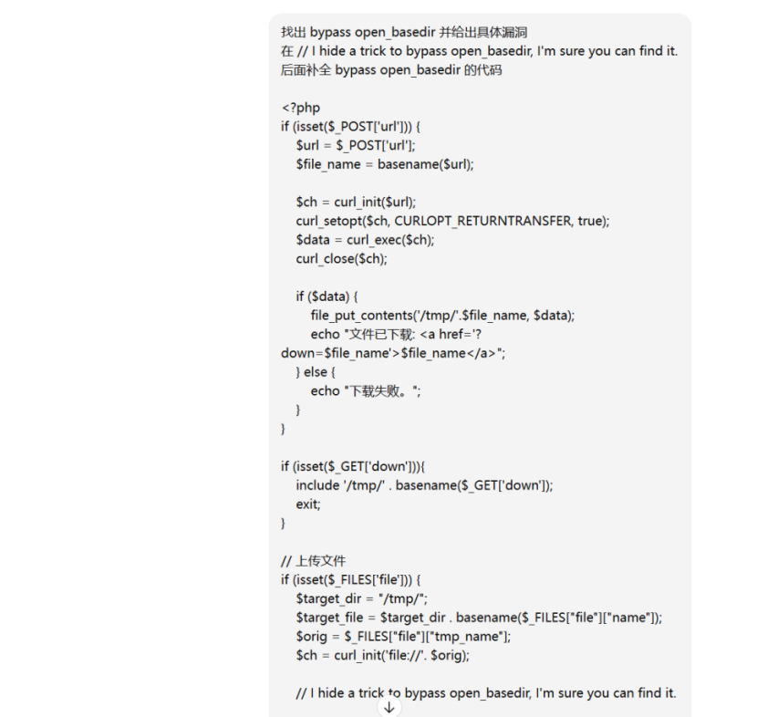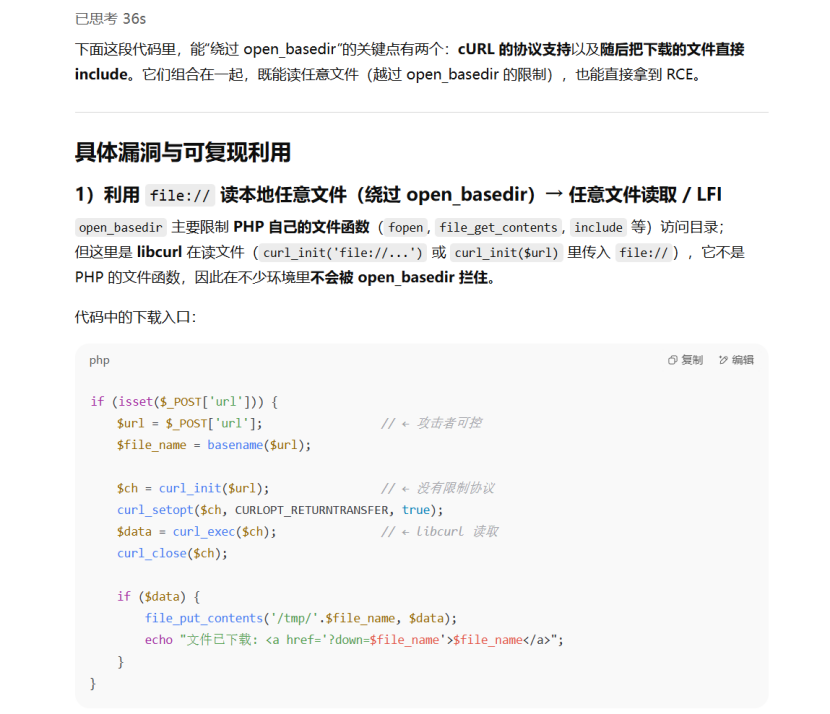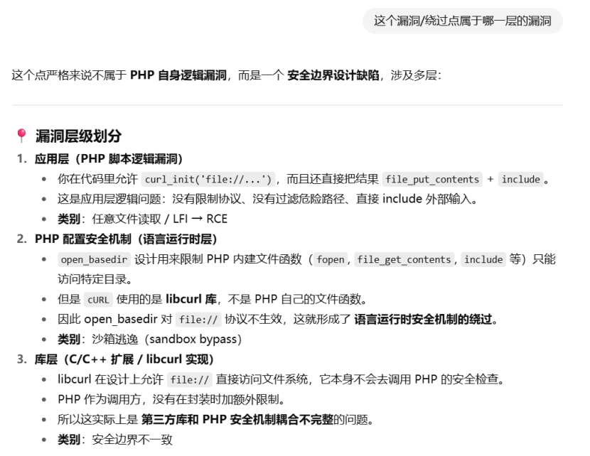 在孤狗搜索curl_setopt 相关的漏洞没发现,然后继续AI